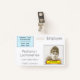 Cette conception moderne et contemporaine de badge du personnel comprend des informations personnalisables telles qu'une photo de portrait, un logo d'entreprise, un nom de membre du personnel et un nom d'emploi. Un badge comme celui-ci pourrait être utilisé pour montrer que quelqu'un dans une entreprise ou un lieu de travail est un membre autorisé et identifié du personnel. [~Z0000450]