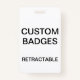 La coutume a imprimé a personnalisé 3,38" x 2,13" modèle ESCAMOTABLE VERTICAL de blanc d'INSIGNE d'AGRAFE. La conception, créent, font vos propres. Votre photo, image, texte, le logo, graphiques en bord-à-bord polychrome impriment sur l'avant et l'arrière, horizontal ou vertical. Fait du plastique de PVC, les biens, ne se faneront pas ou ne déchireront pas. Agrafe escamotable, en métal, collier de lanière, ou juste insigne.