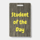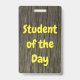 Cette conception de badge d'inspiration nature présente le message "Étudiant du jour". Un badge comme celui-ci pourrait être utilisé pour reconnaître un étudiant qui a bien fait. [~Z0000317]
