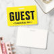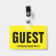 Cette conception de badge de base comprend le message "GUEST", ainsi qu'un nom de société personnalisable ou un autre message personnalisé. Un badge comme celui-ci pourrait peut-être être utilisé pour indiquer qu'une personne est un invité ou un visiteur connu et autorisé dans une entreprise ou un lieu de travail. [~Z0000307]