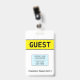 Cette conception de badge simple comprend le message "GUEST", ainsi qu'un nom de société personnalisable ou un autre message personnalisé. Un badge comme celui-ci pourrait être utilisé pour indiquer que quelqu'un dans un lieu de travail ou une entreprise est un invité/visiteur autorisé. [~Z0000307]
