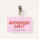 Ce design branché de badge comporte le message "AUTHORIZED GUEST", ainsi qu'un nom d'entreprise personnalisable ou tout autre message personnalisé. Un badge comme celui-ci pourrait être utilisé pour indiquer que quelqu'un dans un lieu de travail ou une entreprise est un invité/visiteur autorisé. [~Z0000307]