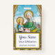 Sainte-Anne, femme de saint Joachim, mère de Marie, la Sainte Vierge, grand-mère de Jésus. + Sainte-Anne qui enseigne à Marie à lire les Écritures à partir d'un livre ou d'un parchemin est peut-être *le motif le plus familier aux spectateurs contemporains qui présente cette sainte. Les statues de Sainte-Anne et de Jeune Marie font honneur à d'innombrables églises catholiques, chapelles et écoles paroissiales. Dans ce cas, le parchemin que Sainte Anne tient et pointe contient une prophétie qui se rapporte directement à Marie (Ésaïe 7:14). En latin, on peut lire : "Ecce virgo concipiet, et pariet filium, et vocabitur nomen ejus Emmanuel" [Biblia Sacra Vulgata (VULGATE)]. C'est-à-dire : "Voici, une vierge va concevoir, et porter un fils, et son nom sera appelé Emmanuel" [Douay-Rheims 1899 Édition américaine (DRA)]. + Nulle part dans les Évangiles canoniques, Sainte-Anne n'est nommée que dans le Nouveau Testament Apocrypha, plus précisément l'Évangile de Jacques. L’Évangile de Jacques prétend donner une histoire narrative de la famille et de la vie précoce de BVM, de sa conception miraculeuse à la naissance de Jésus remplissant les blancs avant l’Annonciation. Bien que rejeté pour inclusion dans le canonique 27 livre Nouveau Testament, l'Évangile de Jacques était une source importante pour Bl. Le chapitre de Jacques de Voragine sur la première vie de Marie dans sa Légende d’or, le livre le plus important et le plus lu après la Bible au Moyen Age. En tant que tels, les histoires et l'art qui s'en inspire nous sont descendus aujourd'hui. L’image dévotionnelle belge reproduite ici remonte à la Renaissance néo-gothique de la fin du 19ème siècle, un mouvement d’art et d’architecture ecclésiastiques qui s’inspire du Moyen Age. + Sainte-Anne est patronne de femmes célibataires, de ménagères, de femmes au travail ou qui veulent être enceintes, de grand-mères, de grands-parents et d'éducateurs. Elle est également patronne des cavaliers, des ébénistes et des mineurs. + Fête : 26 juillet (avec St. Joachim). Aux États-Unis, la Journée nationale des grands-parents est célébrée par la loi en septembre le premier dimanche après la Fête du travail ; mais de nombreuses personnes religieuses honorent aussi officieusement leurs grands-parents le 26 juillet. + Crédit image (SAU 29) : Chromolithographie néogothique antique de Sainte-Anne et de la Jeune Marie sur une page libre probablement d'un livre de prière publié à l'origine par la Société de Saint-Augustin, Bruges, Belgique, fin 19e siècle, de la collection privée de l'auteur de l'éphémère religieuse.