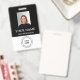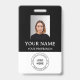 Bleu personnalisé Nom photo de l'employé Badge avec logo et code barre Personnalisez facilement ce badge personnalisé de nom d'employé avec votre photo, code barre de balayage et logo de l'entreprise. Doté d'un design épuré et professionnel, en bleu et blanc éclatant, il est entièrement personnalisable à l'avant comme à l'arrière. Convient avec des polices sans-serif modernes pour un look clair et professionnel. Disponible avec une nacelle, un clip métallique ou un support rétractable. Idéal pour les entreprises de toute taille, pas de commande minimum.