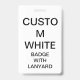 La coutume a imprimé a personnalisé 2,13" x 3,38" INSIGNE de PORTRAIT AVEC le modèle de blanc de LANIÈRE. La conception, créent, font vos propres. Votre photo, image, texte, le logo, graphiques en bord-à-bord polychrome impriment sur l'avant et l'arrière, horizontal ou vertical. Fait du plastique de PVC, les biens, ne se faneront pas ou ne déchireront pas. Agrafe escamotable, en métal, collier de lanière, ou juste insigne. Meilleur pour le bureau et l'utilisation d'identité d'affaires, les expos, les expositions, les conférences et les événements d'entreprise.