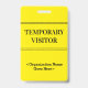 Caractéristiques de conception ce élégantes d'insigne le message "VISITEUR PROVISOIRE", et un nom de la société personnalisable ou tout autre message fait sur commande. Un insigne comme ceci pourrait être employé pour indiquer qu'on permet à un un visiteur ou un invité sur un lieu de travail d'être là. [~Z0000307]