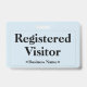 Cette conception de badge simple comprend le message "Visiteur inscrit", ainsi qu'un nom de société personnalisable ou un autre message personnalisé. Il dispose également d'une bordure à une ligne avec des coins arrondis. Un badge comme celui-ci pourrait être utilisé pour indiquer que quelqu'un dans un lieu de travail ou une entreprise est un invité/visiteur autorisé. [~Z0000307]