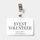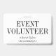 Ce design classique de badge comporte le message "VOLONTAIRE DE L'ÉVÉNEMENT". Un badge comme celui-ci pourrait peut-être être utilisé pour montrer que le porteur est un représentant officiel à un événement. [~Z0000307]