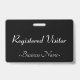 Cette conception opulente de badge comporte le message "Visiteur inscrit", ainsi qu'un nom de société personnalisable ou un autre message personnalisé. Un badge comme celui-ci pourrait peut-être être utilisé pour indiquer qu'une personne est un invité ou un visiteur connu et autorisé dans une entreprise ou un lieu de travail. [~Z0000307]