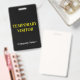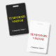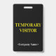 Ce design élégant de badge comporte le message "VISITOR TEMPORAIRE", ainsi qu'un nom d'entreprise personnalisable ou tout autre message personnalisé. Un badge comme celui-ci pourrait être utilisé pour indiquer que quelqu'un dans un lieu de travail ou une entreprise est un invité/visiteur autorisé. [~Z0000307]