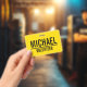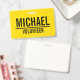 comporter le nom et le titre dans la police audacieuse blanche de caractère sans obit et sans empattement sur l'arrière - plan jaune.