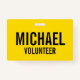Volontaire jaune Nom et titre en caractères gras sans serif blancs sur arrière - plan jaune.