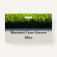 Des badges de nom d'employé de service de soins de la pelouse conçus de façon professionnelle dans un design à deux côtés avec l'image de pelouse parfaite dans l'espace arrière - plan et texte vous pouvez customiser en ligne dans un design économique.