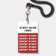 Employez ces derniers des insignes d'événement spécial de budget créés en rouge et le blanc avec des lanières incluses. La conception étant imprimé des deux côtés votre information sera montrée même si les insignes se tournent autour vers l'autre côté. Customisez ces en ligne pour des salons commerciaux, des concerts, des séminaires, ou des événements spéciaux.