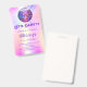 Badge Invitation d'anniversaire Disco party rose hologra