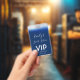 Vos invités adoreront ce badge d'invitation VIP Sweet 16 unique. Ce design moderne présente un fond bleu marine, des lumières scintillantes et une police de calligraphie.