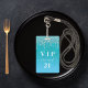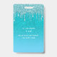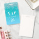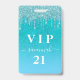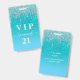 Un badge moderne, élégant et glamour pour une fête d'anniversaire du 21e (ou tout âge). Un fond pailleté dégradé sarcelle, vert, bleu avec un effet de gouttes de paillettes fausses, aspect de peinture qui goutte. Personnalisez et ajoutez un nom. Le nom est écrit avec une police manuscrite moderne avec enjolivures. Le texte : VIP Numéro 21. Pour garder les enjolivures, supprimez simplement le nom de l'exemple, laissez les espaces ou émojis devant et après le nom.