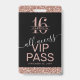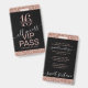 Les invitations de badge d'accès tout compris VIP Sweet 16 personnalisées avec paillettes rose et noir peuvent être personnalisées avec le nom de chaque invité ou créer un monogramme pour la jeune fille qui fête ses seize ans. Les détails de l'invitation de fête sont imprimés au verso avec une police moderne sans serif et une écriture calligraphique avec fioritures pour un look moderne et chic.