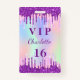 Badge Invitation VIP violet parties scintillant arc-en-c