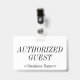 Cette conception de badge respectable présente le message "INVITÉ AUTORISÉ", ainsi qu'un nom de société personnalisable ou un autre message personnalisé. Un badge comme celui-ci pourrait éventuellement être utilisé pour indiquer qu'une personne est un invité connu et autorisé ou un visiteur dans une entreprise ou un lieu de travail. [~Z0000307]