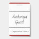 Cette conception de badge simple comporte le message « Invité autorisé ! » et un nom de société personnalisable ou un autre message personnalisé. Un badge comme celui-ci pourrait être utilisé pour identifier que quelqu'un sur un lieu de travail ou une entreprise est un invité/visiteur autorisé. [~Z0000307]