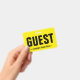 Cette conception de badge simple comporte le message « INVITÉ », ainsi qu'un nom de société personnalisable ou un autre message personnalisé. Un badge comme celui-ci pourrait être utilisé pour indiquer qu'une personne est un invité connu et autorisé ou un visiteur dans une entreprise ou un lieu de travail. [~Z0000307]