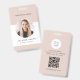 Ce badge d'identification d'employé est doté d'une fente photo ronde, d'une option de logo et d'un design moderne rose-roux. Ce badge est parfait pour n'importe quelle profession et inclut les coordonnées des entreprises sur le côté arrière.