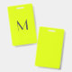 Badge avec une teinte éclatante de jaune appelé "jaune fluorescent". Il dispose d'un arrière - plan de couleur solide et d'une police gris foncé. Design élégant par Alma Wad Personnalisez-le avec votre monogramme maintenant. Vous pouvez ajouter plus de détails comme nom /logo /position etc. Le jaune est associé au signe de Gemini en astrologie occidentale. Vous pouvez tenir compte de cela lors du choix de votre couleur.