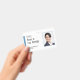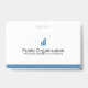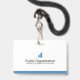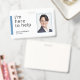 Un badge d'identification moderne pour les bénévoles utilisant l'expression "Je suis ici pour aider" comme texte d'introduction. Le badge comprend la photo d'identité des bénévoles ainsi que le nom des bénévoles. Le verso indique le nom de l'événement ou de l'organisation. Ce badge fonctionnerait également très bien pour le personnel de vente.