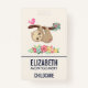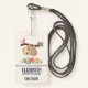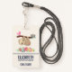 Insigne de nom avec l'illustration d'un mignon paresseux brun accroché à l'envers. Ce drôle de petit gars se tient sur une branche qui a un petit oiseau rose d'un côté de la branche et un bouquet de roses à la façon d'un doodle de l'autre côté. En-dessous se trouve un arrangement de fleurs colorées dessinées à la main. Cette paresse adorable a aussi des joues roses et 3 coeurs mignons sur son cul.