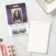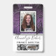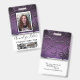 Faux violet pourpre et noir paillettes brillent agréablement derrière un modèle de photo avec cadre noir et blanc. Mettez facilement à jour le nom et le titre professionnel pour chaque badge employé personnalisé. Il y a également de la place pour un logo d'entreprise — supprimez pour laisser vide. Le verso présente plus de fausses paillettes et un modèle d'image parfait pour les codes-barres des employés. Disponible dans de nombreux autres styles et couleurs.