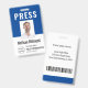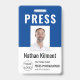 Journalist Press Pass Photo Nom Logo ID Marine Badge Bleu et Blanc. Pour plus de personnalisation, cliquez sur le bouton "Customiser" et utilisez notre outil de conception pour modifier ce modèle.