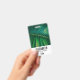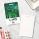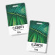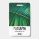 badge de nom personnalisé avec une photo closeup d'une feuille verte tropicale arborant des frondes de palmiers vibrantes.