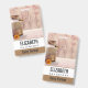 badge de nom personnalisé au design rustique. Un vieux lait rouillé peut avec une jolie fleur de gerbera orange à côté. Blé et pavots rouges estampillés dans l'arrière - plan dressés contre un panneau en bois. Le bois n'est qu'une image, pas réel.