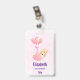 Badge personnalisé avec une illustration adorable. Un petit lapin bébé portant une minuscule couronne dorée. Transporté par des ballons dans une couverture rose en forme de cœur.