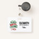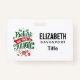 Balise de nom avec une illustration cool. Texte dit Croire à la magie en lettres fantaisistes. Décoré de boules de noël.
