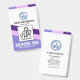 Au-dessus, dans un couvercle blanc, la même bande colorée encapsule le dessus du badge. Puis vient le logo santé ; Vous pouvez le remplacer par une photo si vous le souhaitez, la taille de la photo est de 1000 x 1000 pix. Ensuite, les remarques sous-titrées, c.-à-d. "Si vous perdez le retour à", changez la légende en fonction de vos besoins organisationnels. Votre nom et votre numéro d'employé viennent ensuite, suivis des coordonnées et d'un slogan pour faire connaître vos services.