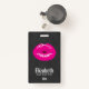 badge de nom personnalisé avec une illustration avec des lèvres roses chaudes. Image audacieuse et vibrante. Placez-vous sur un arrière - plan en marmite noire.