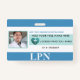 Licence horizontale Infirmière pratique (ou autre que vous pouvez modifier les initiales et la description de travail en utilisant les zones de texte fournies) Badge d'ID photo. Design bleu clair et vert Menthe avec logo médical turquoise du coeur qui peut être changé au logo de votre entreprise en utilisant facilement notre image modèle. Les initiales LPN en bas en blanc sur bande bleue claire. ID avec photo, nom, nom de l'entreprise/hôpital et numéro d'identification. Si le numéro d'identification n'est pas requis, il peut être effacé ou ajouter toute autre information que vous souhaitez. Retour avec la zone pour l'information dans le badge coque se perd. À tout le personnel Médicale en ligne, MERCI POUR VOTRE SERVICE EXTRAORDINAIRE!