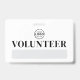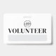 Un design de badge de bénévole simple et professionnel, parfait pour les événements, les entreprises ou les organisations qui dépendent des bénévoles. "Bénévole" est bien visible en haut, avec un espace en dessous pour le nom de l'événement ou de l'entreprise et la date.
