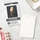 Ces badges photo d'identité ont un thème gris et blanc. Ils comprennent la photo, le nom et le titre de l'emploi de votre employé sur le devant, ainsi que le nom de la société / société et le logo de l'entreprise. L'arrière comprend la place pour les informations "si trouvé" (y compris l'adresse et le numéro de téléphone), plus l'espace pour un numéro d'identification et un code à barres. La conception comprend également un arrière - plan motif de grille et un thème de graphique linéaire. Utilisez le modèle facile à personnaliser, puis utilisez l'outil de conception pour effectuer des modifications plus détaillées (comme ajuster la taille du logo ou du code-barres ou supprimer et réorganiser les éléments). Ce design attrayant est parfait pour un directeur de bureau, un assistant administratif, un cadre ou tout employé d'entreprise.