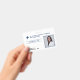 Badge d'identification photo médicale dans une disposition horizontale. Ce design simple mais professionnel présente un modèle en bleu marine personnalisé avec votre logo, le nom de l'hôpital, le nom et la fonction de l'employé. Votre photo est sur le côté droit et votre département est à gauche avec une ligne au-dessus et en dessous. Votre nom et votre fonction sont en gras en bas à gauche. Le verso contient vos coordonnées et les instructions pour le retour en cas de perte. Ce design classique est parfait pour un médecin, une infirmière diplômée, une infirmière itinérante et de nombreux autres membres du personnel médical.