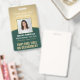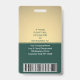 **Veuillez noter que le fond est imprimé pour avoir l'apparence métallique, mais le produit n'est pas fait de métal et n'est pas une feuille métallique.** Représentez votre entreprise avec style en fournissant à votre personnel des badges d'identification modernes et professionnels. Le logo, la photo, le code-barres et tout le texte de ce modèle sont faciles à personnaliser. Le design vert et or présente un fond métallisé faux avec un arc incurvé élégant, votre logo d'entreprise, une photo carrée, le nom et le titre de l'employé, et un code UPC / code-barres au verso. Il peut fournir une organisation et une sécurité pour le personnel de l'entreprise, tout en présentant l'image de marque de l'entreprise avec une apparence classique et élégante. Veuillez noter que l'or est une couleur imprimée, pas une feuille métallique.