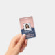 **Veuillez noter que le fond est imprimé pour avoir l'apparence de métal, mais le produit n'est pas fait de métal et n'est pas une feuille métallique.** Représentez votre entreprise avec style en fournissant à votre personnel des badges d'identification modernes et professionnels. Le logo, la photo, le code-barres et tout le texte sur ce modèle sont faciles à personnaliser. Le design bleu marine et rose comporte un fond en faux or rose avec un arc courbe élégant, votre logo d'entreprise, une photo carrée, le nom et le titre de l'employé, et un code UPC / code-barres au dos. Il peut fournir une organisation et une sécurité pour le personnel de l'entreprise, tout en présentant l'image de marque de l'entreprise avec une apparence classique et élégante. Veuillez noter que la couleur or rose est une couleur imprimée, et non une feuille métallique.