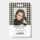Créez une première impression élégante avec ce badge d'identification chic et élégant. Un modèle moderne avec l'emblématique motif en houndstooth, associé à des rayures contrastées. Personnalisez avec votre nom, titre de poste, logo de l'entreprise, code QR et coordonnées. Tout le texte peut être customisé ou supprimé pour répondre à vos besoins professionnels. Ce design classique est idéal pour de nombreux lieux de travail et professions : stylistes de mode, consultants de beauté, directeurs créatifs, designers d'intérieur, professionnels d'entreprise, employés de détail, hôteliers, petites entreprises, étiquettes de nom de conférence, etc. Couleurs : noir, blanc et blanc cassé.