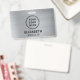 Badge nominatif moderne avec le logo de votre entreprise ou organisation sur un fond métallisé argenté brossé. Ajoutez un nom et un titre avec une typographie simple.
