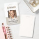Un badge d'identité d'entreprise moderne et élégant conçu dans une palette de couleurs dorées douces. Facilement personnalisable avec une photo d'employé, son nom, son titre, le logo de l'entreprise et d'autres détails commerciaux. La mise en page comporte une typographie propre pour une apparence professionnelle et claire, assurant une identification facile. Ce badge d'identification est disponible avec des options pour un cordon, un clip métallique ou un support rétractable. Aucune commande minimale requise.
