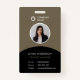 Ce badge d'identification du personnel d'employés moderne présente un design élégant de bloc de couleur brun et noir avec des tons blancs. La conception présente le nom de l'employé en caractères gras, la photo de l'employé dans un espace réservé à cercle fermé spécial et le titre/poste de l'employé. Le badge d'identification offre une option pour le logo et le nom de la société en haut. D'autres renseignements personnels comme l'ID, le téléphone et le courriel peuvent être entrés en bas. D'autres renseignements importants relatifs à l'employé peuvent être spécifiés à l'arrière. Le design présente un design novateur avec des courbes et des couleurs élégantes. Vous pouvez également ajouter du texte supplémentaire au verso de la carte pour la ligne ou le slogan de l'étiquette de la société.