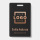 Personnalisez facilement ce badge personnalisé de nom d'employé avec votre propre logo d'entreprise et code qr ou code-barres. Disponible avec différentes couleurs et pièces jointes arrière - plans. Pas de quantité minimale de commande.