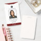 Logo de l'entreprise personnalisée - Logo de l'employé Badge d'ID photo. Personnalisez ces badges verticaux avec une photo et un nom d'employé, du texte personnalisé pour le numéro d'identification d'employé, le rôle ou le titre, l'emplacement ou d'autres données clés. Ajoutez votre logo.